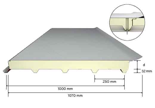 PVC Membranlı  Poliüretan Dolgulu Çatı Paneli